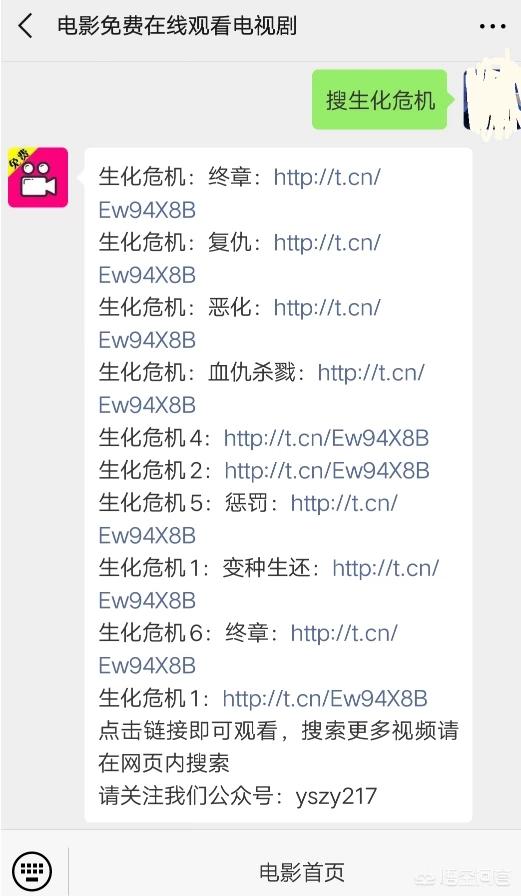 和上一个网站一样,在微信里通过添加该公众号,输入搜和电影的名字,就可以免会员看任何高清电影,想免费看电影的朋友可以试一下。