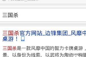 1、打开手机浏览器,搜索“三国杀”点第一个进入官网,注意不要点其他的应用下载。
