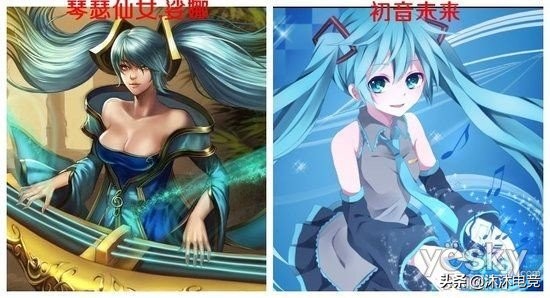 【娑娜】,这一辅助英雄一出,就被认定为以初音为原形制作的。也有人说是丰满版的初音少女,不管怎么样,初音未来的形象确实和琴女十分像八分,简直就是双胞胎。只可惜在人物背景上的差别比较大,娑娜在英雄联盟中是哑女,以琴弹奏出音律给人带来幸福。初音则是用优美的嗓音打动世人。不过同样是因为用音乐为主,这点还是不可否认的!