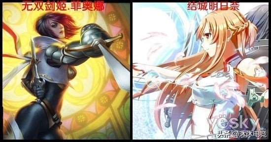 【剑姬】,结城明日奈轻小说.动画《刀剑神域》中的女主角,武器是细剑.闪烁之光。能使出高速高准度的连击,而有闪光的称号。而我们的剑姬在英雄联盟中也是以剑为武器,剑姬的大招也使用在对手身上,无影无踪只会看到身边的闪光点。这也是两位的相同点。从外形上看虽然一个是长发一个是短发,但同时都有着逼人的英气,凛冽的目光。让敌人为之一颤。剑姬在当前版本中也可谓是近战东道主!