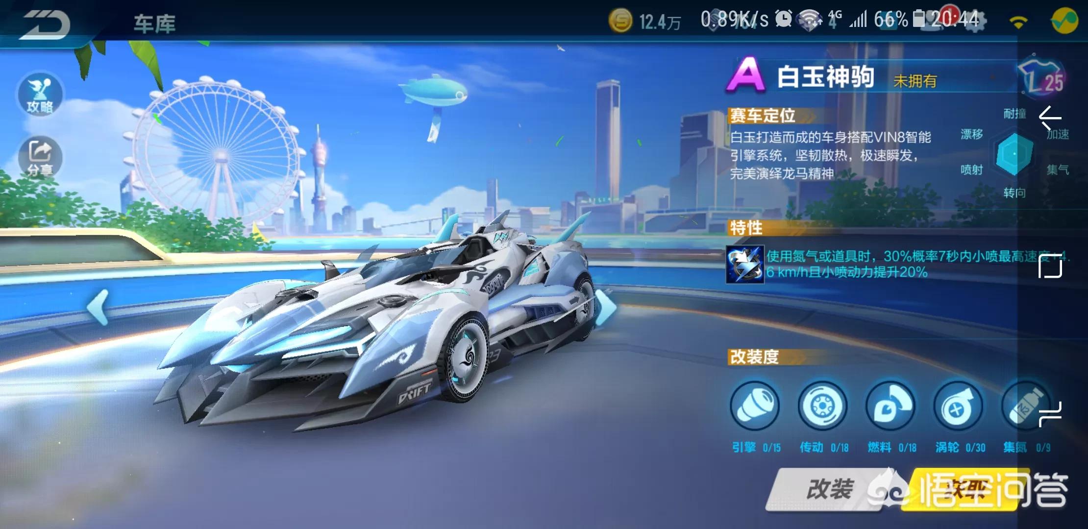 并且白玉神驹的外形我真的很喜欢,配色虽然简单,但很有感觉,怎么说呢?一种灵动的感觉,而且这车的特性无论是道具还是竞速都不错,加速这条属性也是最高的,但是遇到连续漂移时就不太满意了