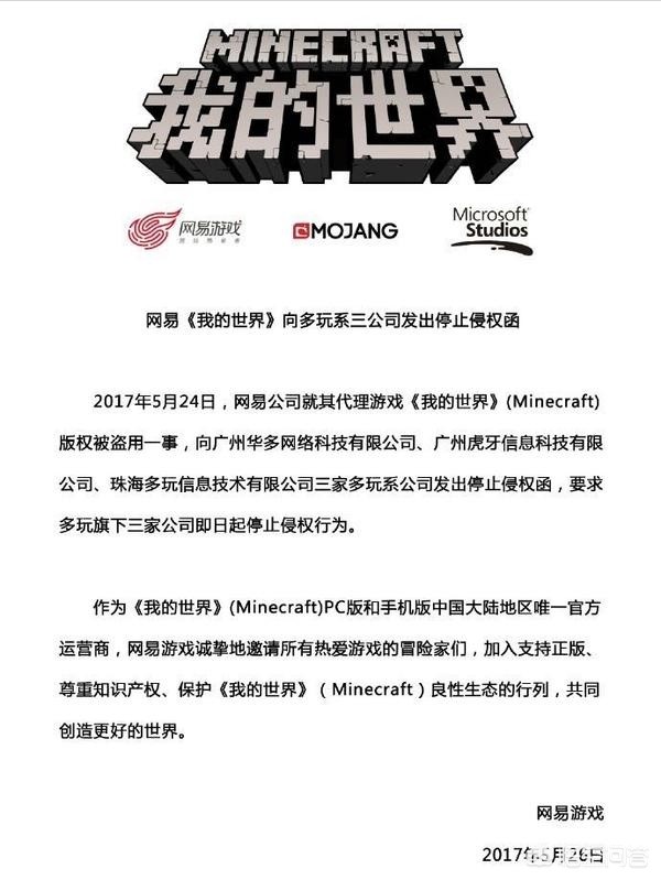 直到2016年,网易取得了Minecraft的中国代理权才正式更名为我的世界。不过当时国内已经出现大规模的抄袭借鉴Minecraft的沙盒类游戏。网易多方维权,勒令当时上架的很多侵权方将其游戏下架。国内很多开发公司经过这一轮的维权以后大部分都已下架类似游戏。现在用户最多还在运行的也就是迷你世界了。