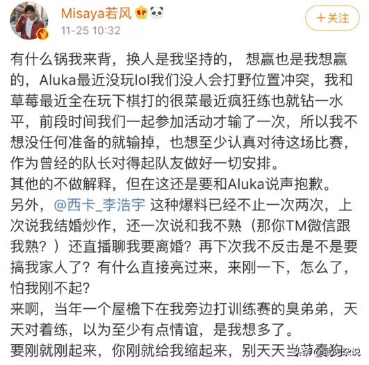 本来就是娱乐赛,这个回应是不是太正式一些,电子竞技,输赢是很重要,但是这样回应之后,总得想想粉丝们怎么想吧。反正前几条没有站他的。