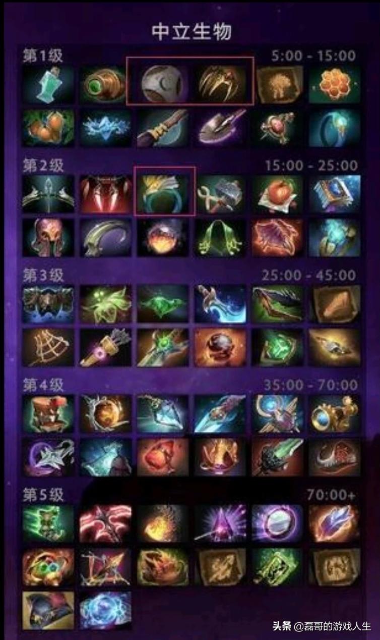 世外之争,就是三路放空全部在野区里打装备。 言归正传,全新的野区装备掉落让游戏充满了更多的偶然性,这是大版本更新必不可少的因素之一。中立生物死亡后有一定5%-10%的几率掉落独特物品,共有62件独特中立物品。无法出售但队友之间可以共享,大哥可以将不需要的装备淘汰给酱油实现资源互补。掉落的物品共有五个级别,每一级中再次掉落的概率都会逐次减半。特定种类的物品每一边队伍都只会掉落一次。