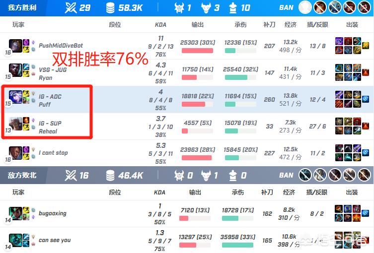 Puff跟Reheal首发上场,韩服双排战绩喜人,13把胜率高达76%,IG能赢下BLG吗