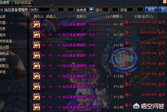 现在+10钻石增幅券卖个6000万,而+11钻石增幅券就要卖3亿金币了,相当于5张+10增幅券了。平民玩家只需要花3亿金币就可以完成防具全套增幅10了,都可以混团本的。