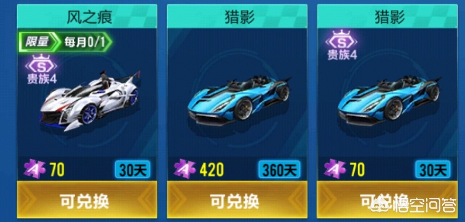 如今碎片商城新添风之痕,这车手感真的很棒,特性方面也稳定实用。我个人建议不肝低氪养生流的玩家选择兑换风之痕。低氪玩家达到贵族4的也不少,普遍都是氪金买宠物之类的,距离购买顶尖A车还是有一定差距,部分欧皇除外。