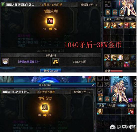 后面第三波又是1300个矛盾直接成功了3件红12,看到这里吃瓜不禁思考“有钱人都这么玩?”这和之前说的那个用传说耳环强化12一样,都是由于哈林可以升级的缘由让这样方法开始火爆了,不得不佩服这位玩家,总之花费肯定是比红12券划算。如果你也想要红12的话,不妨尝试一下!