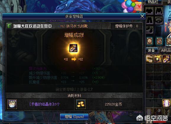 好吧,其实就成功了两件,一件鞋子+一件耳环,这个耳环很明显是相当划算的。两件红12的消耗是6500个矛盾,其实我们算算的化还是比较赚的,一件12钻石增幅不得1600多,并且有几率失败,这些矛盾价值也不超2K,却成了两件红12,最主要的是这两件可以跨界可以升级到95A超界。
