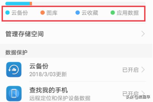4、第四步云服务有数据保护类型的云备份功能,开启云备份之后,可以将手机的图库、联系人、信息、通话记录、设置、相机等进行备份,手机出现数据丢失和文件损坏时,进行恢复数据,如下图所示: