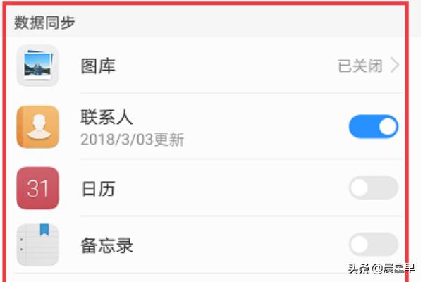6、第六步云服务数据同步类型,可以将手机图片、联系人信息、日历、备忘录,应用数据等信息进行同步,我们在另外一台手机登录账号的时候,这些信息会显示,如下图所示: