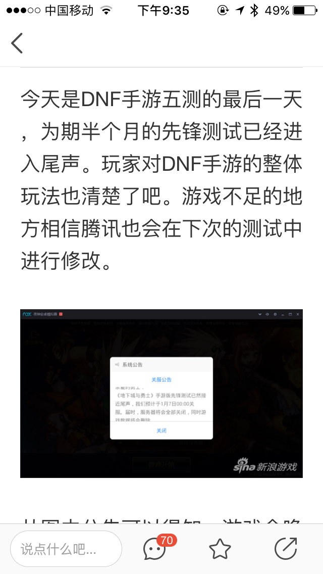 《地下城与勇士》手游版先锋测试于1月7日关服