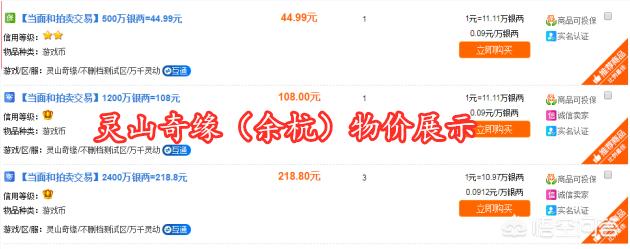 ①《灵山奇缘》:早在17年8月就在某平台上进行了造物内测,次年的6月就开始了不删档测试,不到25天的时间开始了不限号测试了。游戏刚出可谓是火了一时,由于策划只知道圈钱,到了现在游戏人气大不如前。这款游戏的通用交易货币为【银两】。游戏初期1W银两可以卖到七块到八块钱,可现在呢?一块钱可以换11W银两,真是刷新了我的世界观呀!下面,我以某个交易平台物价展示一下:【如图】