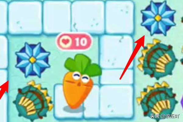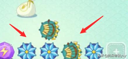 2 在暂停情况下,在方框内放冰星星,并升到顶级,另一个方框内放一个冰星星,升级到二级。顶级冰星星打它下面的云朵,会出来章鱼。二级冰星星配合打前两三波小怪,并升到顶级。