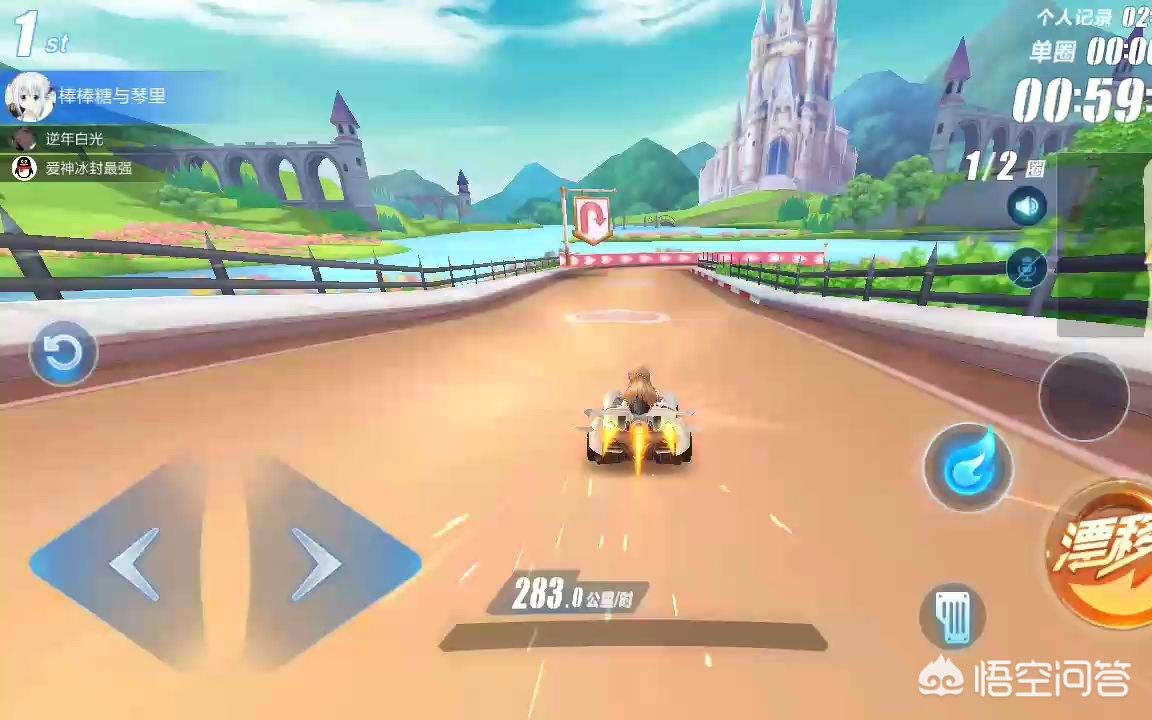 但比赛核心玩法就大大的不同了,先看QQ的飞车在赛道的表现,环境效果做得很好,它的漂移是有点像《马里奥赛车8》的滑行式漂移,转弯的时候要提前几个啪节奏反馈,如果漂移按键点击力度过大,很容易转过弯或变成了调头,因此你须要轻触轻放,个人认为此体验不好。