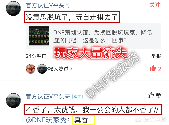但是,现在看到这个问题,我不再自信,反而有点惶恐,DNF的寿命,正在被策划的活动慢慢的蚕食,一味的圈钱活动,各种活动礼包送送送,昨天的极品装备,今天就送,让玩家们心惊胆战。