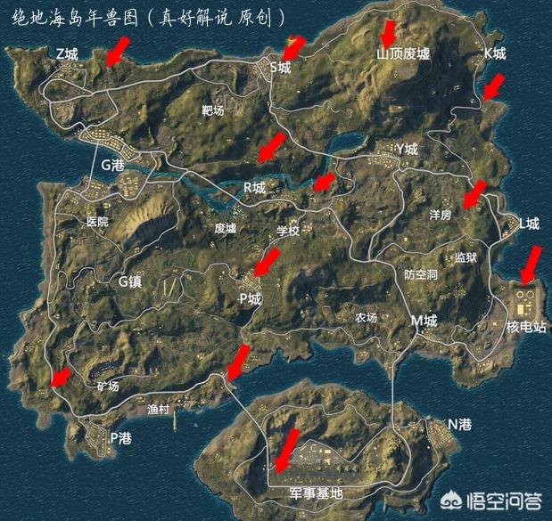 比较容易找的地方(高概率):山顶废墟(左侧)、军事基地(左侧)、桥头(地图右下角那座桥)、洋房(右边野区)、核电站(大烟囱旁边)。
