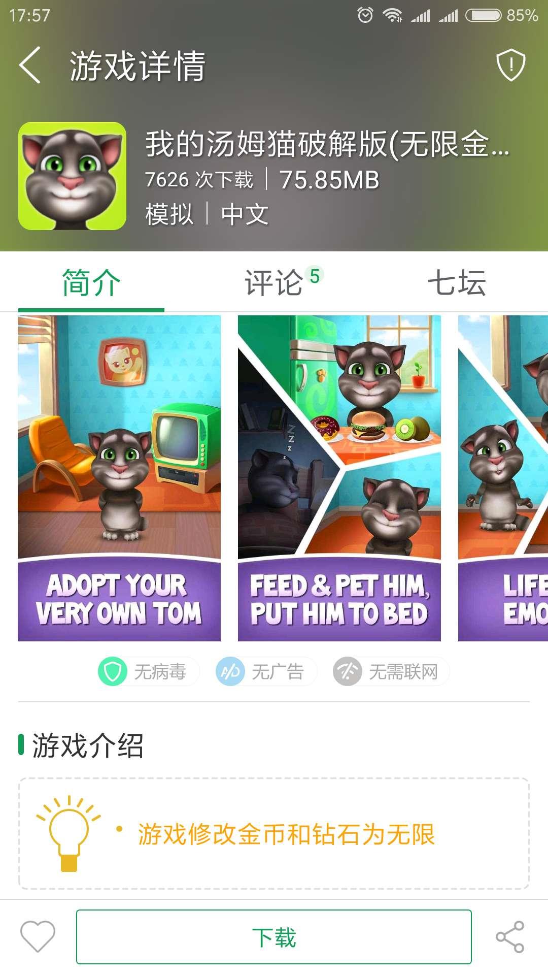 安卓的话就方便多了,葫芦侠和7723游戏盒都有破解版,奇怪的是爱吾游戏竟然没有汤姆猫破解版……