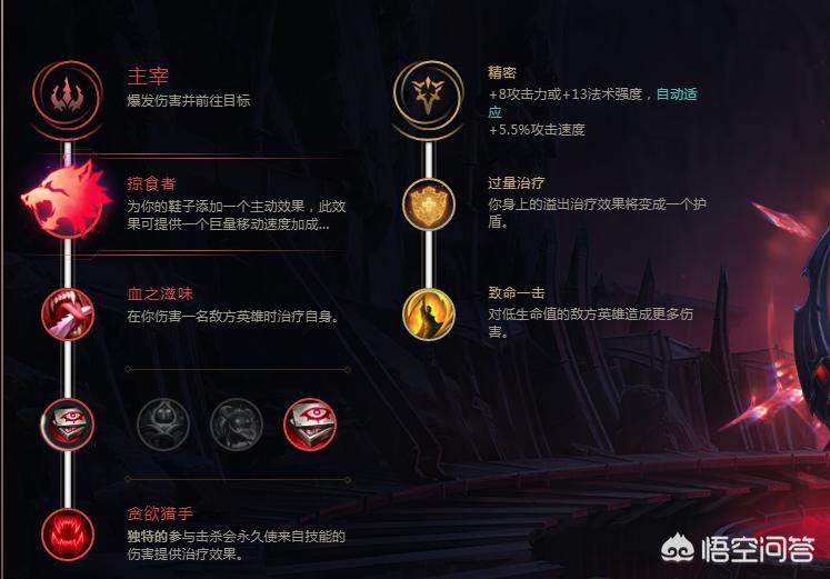 2. 凶猛之力天赋符文可以提供额外的伤害输出和生存能力,例如带有压迫(Sudden Impact)和恶魔之拥(Ravenous Hunter)等符文。