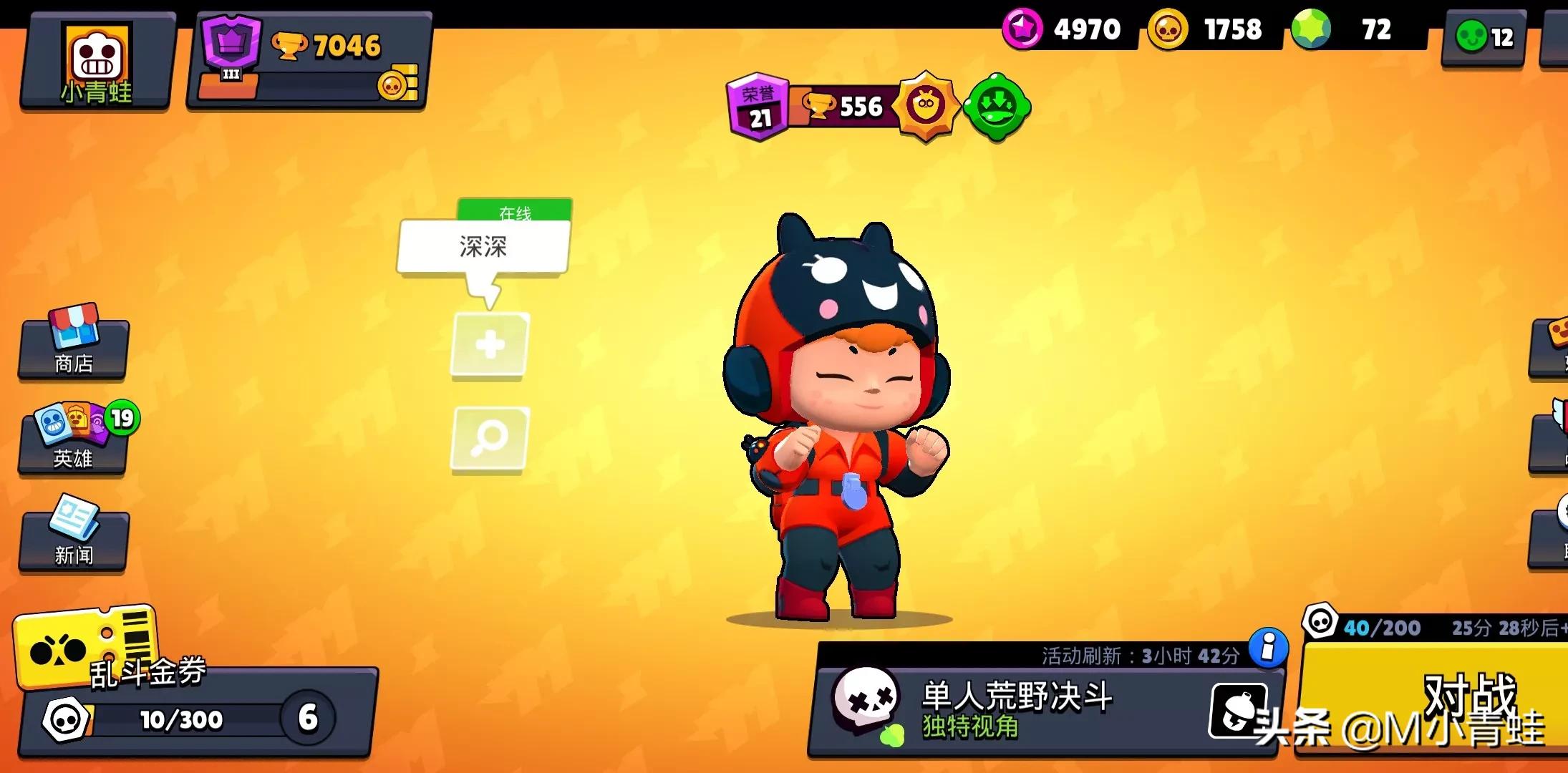 1、最近入手荒野乱斗,游戏属于快餐游戏。