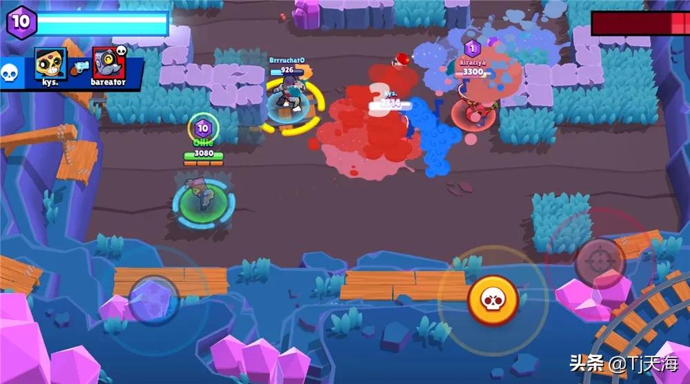 1:游戏背景 (图一,图二)首先这款游戏是芬兰Supercell研发的一款适合团体竞技类的手游游戏(单人我是也有)在这款游戏中,玩家需要在游戏中操控各种英雄进行战斗!根据不同的地图(模式)磨擦出各种各样的火花(毕竟是荒野乱斗,重点突出,在乱斗两字)比如3V3的争夺宝石模式中,三位玩家需要在中间的井口(也就是中间生产出宝石的口子)收集喷出的紫宝石(图三)最先收集到10颗宝石,再经过15秒钟后, 那一方就会胜利!而且你没有听错,荒野乱斗这个游戏是芬兰Supercell研发的!也就是说,这个游戏跟皇室战争,部落冲突的开发公司一样,转换为中文就是超级细胞,这可是闻名世界的游戏公司(有兴趣可以去查查)