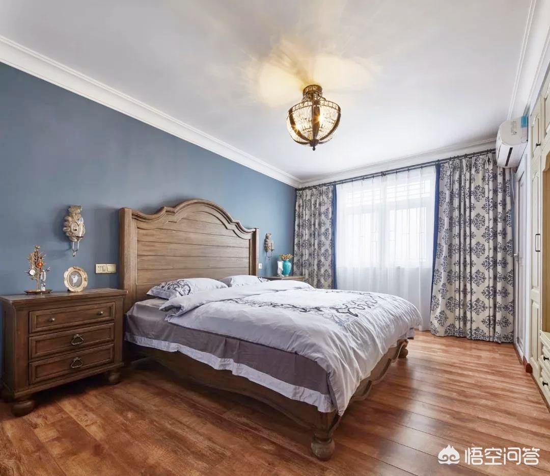 如果喜欢美式或者欧式风格可以用米咖色来搭配墙面,但建议卧室有造型吊顶,床头造型背景搭配美式欧式的家具,这样才会让整个效果更好。