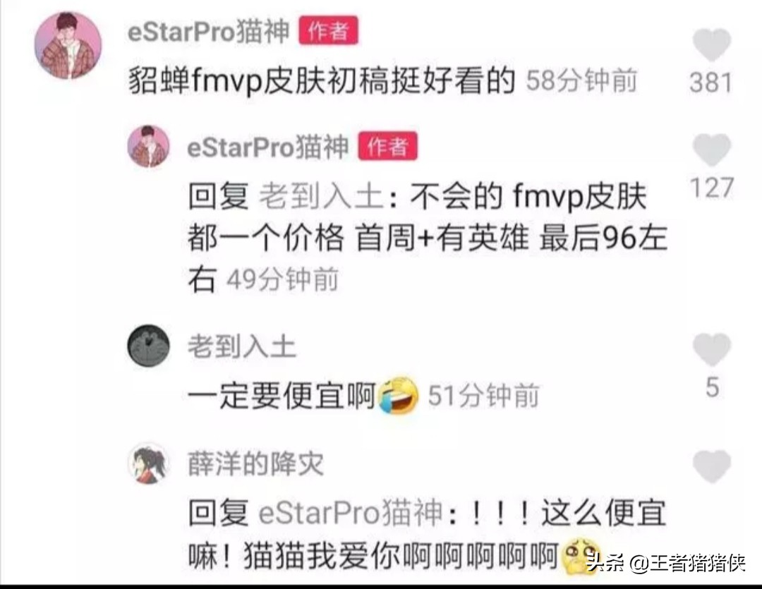 此前猫神也在网回复了网友此款皮肤的价格不会太贵哦,首周+有英雄只要96元,所以大家是不是很期待呢,要知道貂蝉的此款皮肤还是传说级皮肤,这个价格还是可以让大众接受的,对于此款皮肤应该也会很快上线,预计在冬冠赛入场,不知道小伙伴们准备入手此款皮肤吗?