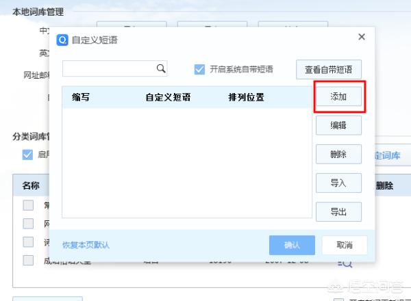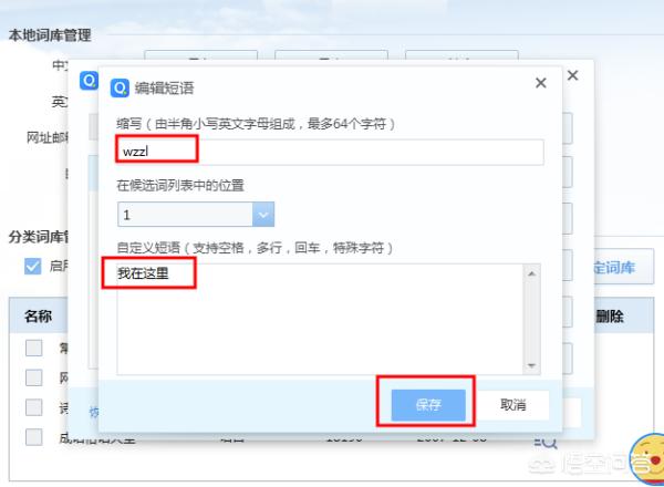 五、在上方输入英文的缩写,下方输入自定义短语,点击“保存”。