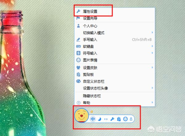 一、首先切换至QQ拼音输入法,然后右键点击状态栏,菜单内点击“属性设置”。