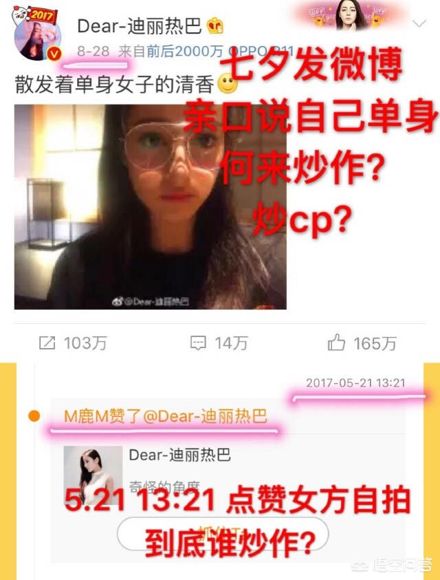 2017年我就是纯路人一个,没事喜欢看看头条,关注到这件事是因为鹿晗粉丝在头条疯狂辱骂迪丽热巴,我就想看看这件事最后结局如何,然后进了贴吧,申请的微博,才知道头条的辱骂实在是轻的,微博上,骂的简直是不堪入目,人身攻击,p黑照,遗照,内涵图,喷脏,天底下最恶毒的字眼都被鹿晗的粉丝用在了这个女孩子身上,说到炒cp我看到的是节目里鹿晗不停地撩拨,微博的5.21号13点14分的点赞,说不是引导cp粉们误会你们信吗?所谓迪丽热巴秒删微博,我也看了,不是秒删,是几分钟之后删的,工作室发微博澄清说是被盗号,然后微博官方也随后证实了这种事,那个视频我不幸点开看了,里面配的绿字,那配乐听的让人非常不适,挺恐怖的,一看就知道是黑粉做的。我现在成为了一名爱丽丝,真的要感谢芦苇,要不是你们这么恶毒的谩骂,我也不会喜欢上这么好的一个姑娘,成为了4000万爱丽丝大军中的一员,这是我人生第一次追星,也是最后一次,吾心向迪,永不分离