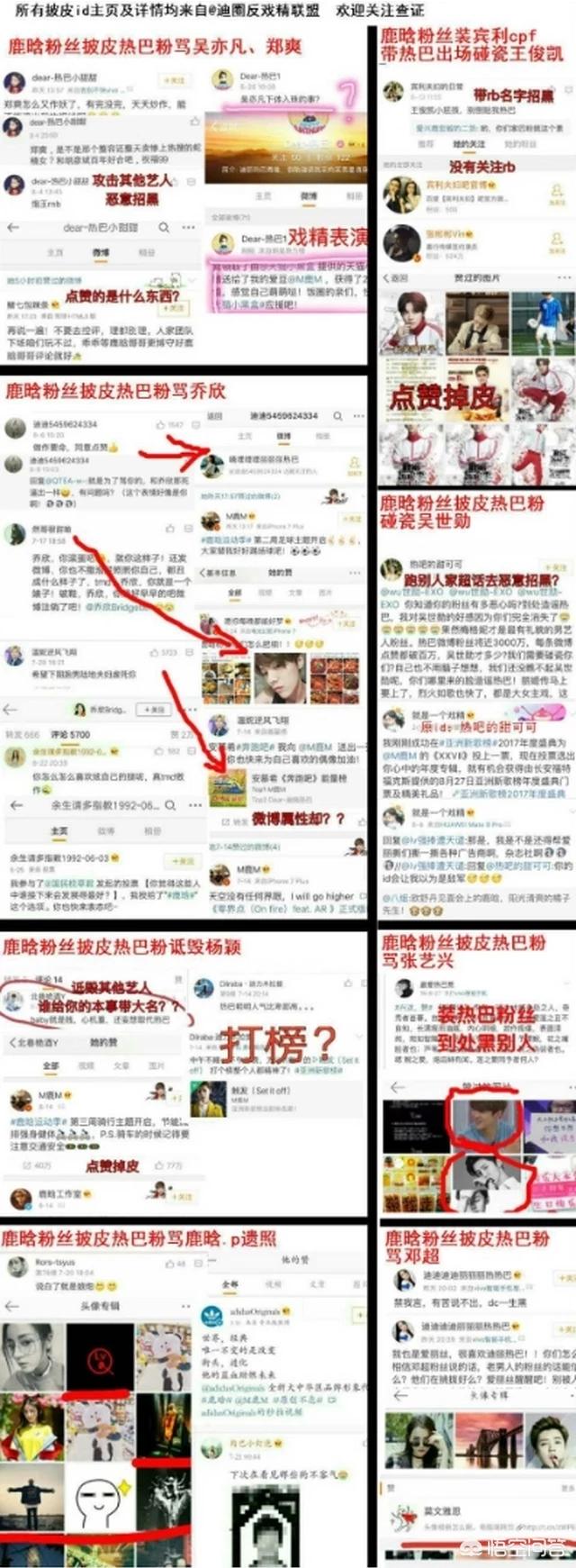 爱丽丝绝对有不理智的,这点我承认。发这些图片没别的意思,某家粉丝有图爱丽丝也不是没图。有的爱丽丝骂过鹿晗,这点我绝对承认 ,但某些别家的伪粉和热巴的黑粉到处作妖,这个锅爱丽丝不背。有的粉丝不理智我不否认,但麻烦将心比心,别一股脑把一切都推到热巴和爱丽丝身上来。