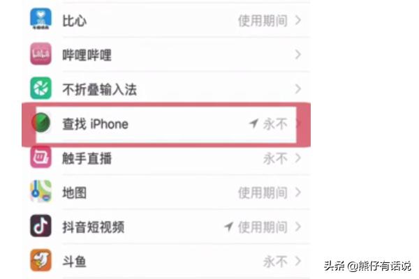 第三步,向上滑动屏幕,找到“查找iPhone”,点击进入。