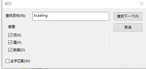 3.然后右击Configuration,选择查找,输入Scaling,在右框内即可看到scaling,右键scaling选择修改,将数值改为3即可,原值为4。
