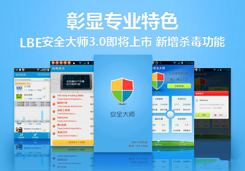 LBE安全大师、鲁大师(可以进行跑分)、猎豹清理(清理垃圾还是不错的)