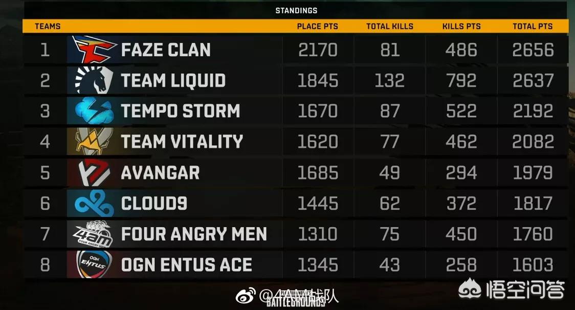 昨天一共进行了五场积分赛,全部由欧美战队拿到第一,第一局比赛由FAZE战队吃鸡,第二局比赛则是VITA战队吃鸡,之后的三场LIQUID发威,拿下了三连吃鸡,在最后一场比赛中,韦神带领的4AM和图拉夫带领的GOL表现亮眼,4AM,GOL与LIQUID决赛圈相遇,揪心的是4A和GOL发生了内战,最终4AM第二,GOL第三,LIQUID成功三连吃鸡!