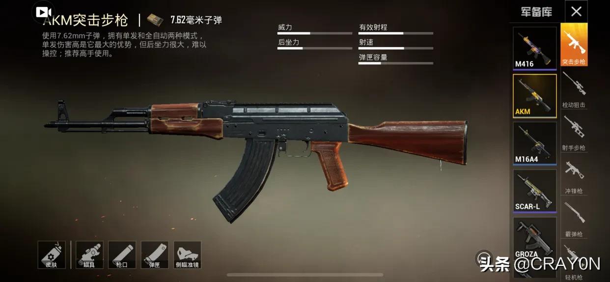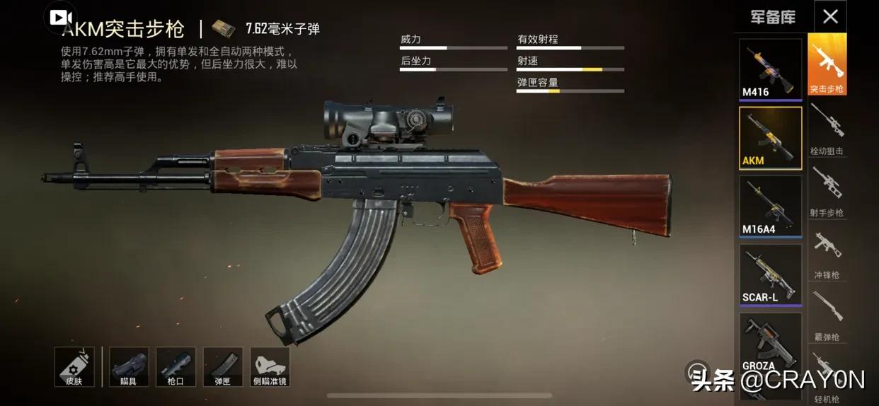 4. 在m762可升级的皮肤出来之前,AKM已经有了可升级的皮肤,也有玩家养成了在这两把枪械面前首选AKM的习惯,因为用它击杀敌人有特效。我也是因为这个因素而习惯了用AKM