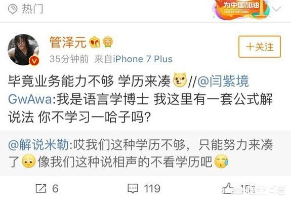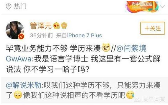 看到这份榜单后娃娃米勒两人也自嘲一番,而管泽元却直接硬刚:毕竟业务能力不够学历来凑。