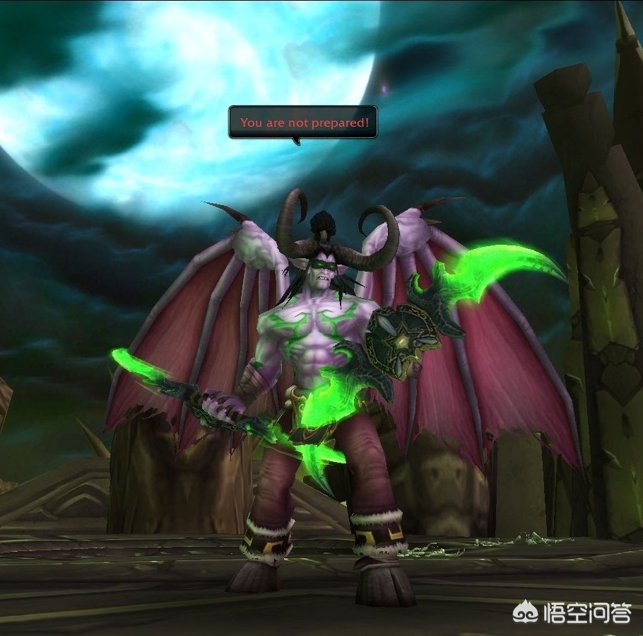 伊利丹.怒风是夜精灵种族的,自从万年前上古时代便已经存在了,手持神兵艾辛诺斯双刃,伊利丹本身除了法术与邪能之外近身格斗技也是很强悍的,自从一万年前的上古之战后被囚禁起来,直到一万年后被释放出来参加战斗,后来伊利丹在费伍德森林遇见阿尔萨斯,两人交战数回合而不相上下,于是两人之间有种惺惺相惜的感觉,阿尔萨斯告知伊利丹去破坏古尔丹之颅就可以解救费伍德森林,两人分开后伊利丹即刻前往取得了古尔丹之颅并且吸收了其中的知识与力量,自此伊利丹成为了恶魔的型态,长出了翅膀、头角以及脚变成了蹄。而我个人认为也正是因为脚变成了蹄才导致了伊利丹后来再次跟阿尔萨斯决斗时被打败的主要原因,在魔兽的设定上有蹄类的无法成为盗贼,因为会引响到潜行、敏捷步法,而伊利丹在变身前的近身格斗技也是靠敏捷的身法来取胜的,所以最初与阿尔萨斯格斗能打个和局,直到脚变了蹄又多了对翅膀,身型的巨变使得伊利丹无法熟练的使用以前的格斗技,也因此被阿尔萨斯看出破绽而击败。即便如此伊利丹还是身负邪能与法术,若是有配合施展我相信未必会输给阿尔萨斯,但是彼此尊敬对手所以两人仅以近身格斗来交手没用什么法术来辅助。