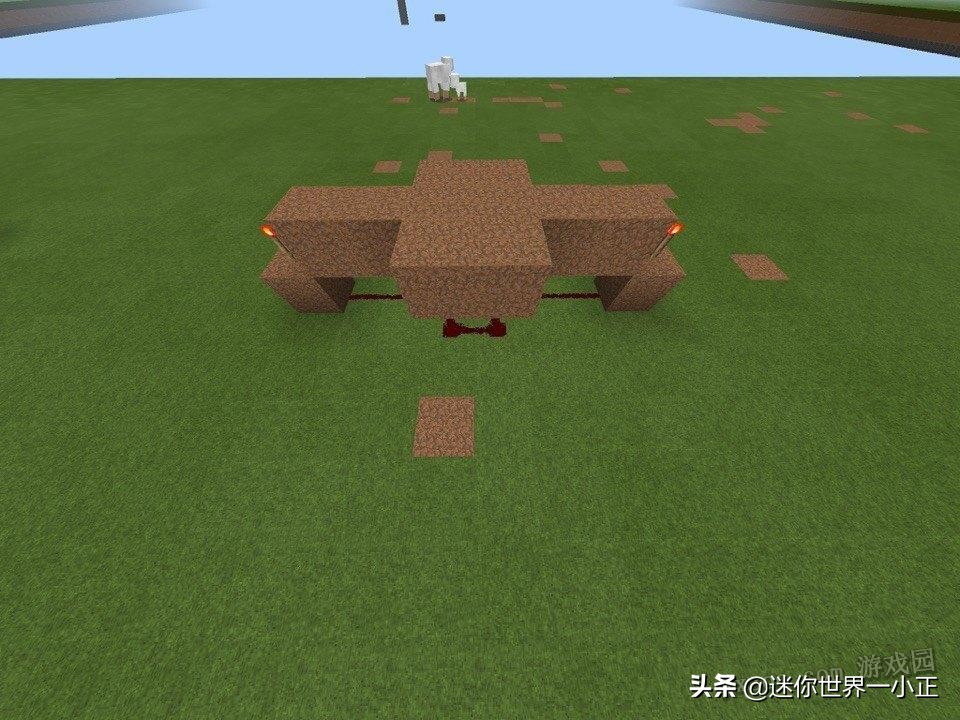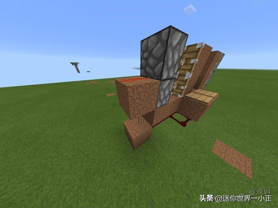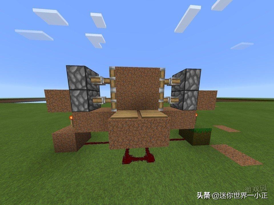 4.在火把上放上任意方块和红石,将地下红石掩盖;