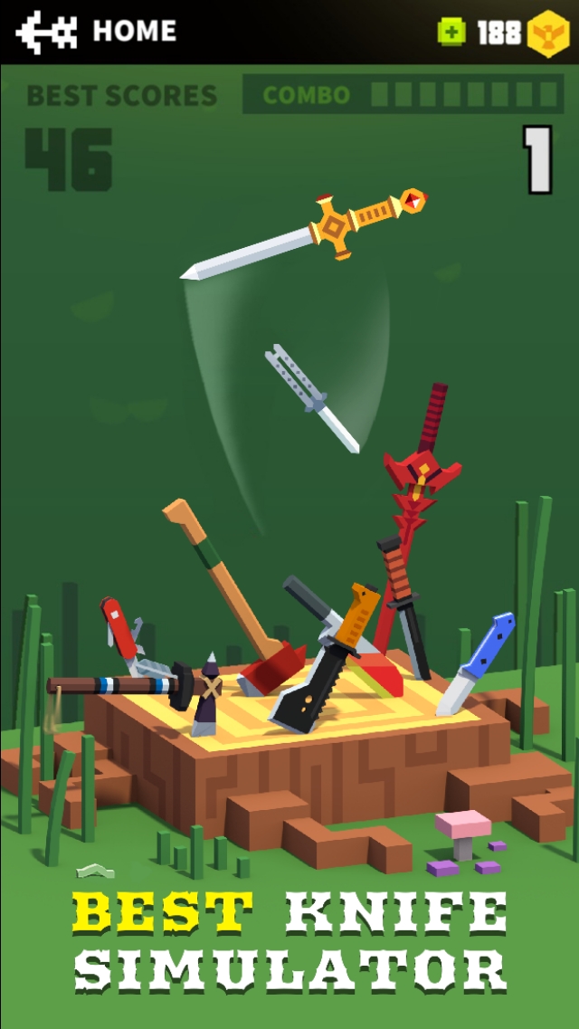 体验非常新颖。需要玩家控制方向和力度,把刀从木头里拔出来飞一圈再扎进木头里。不同刀可能因为配重不同,物理效果也不一样。
