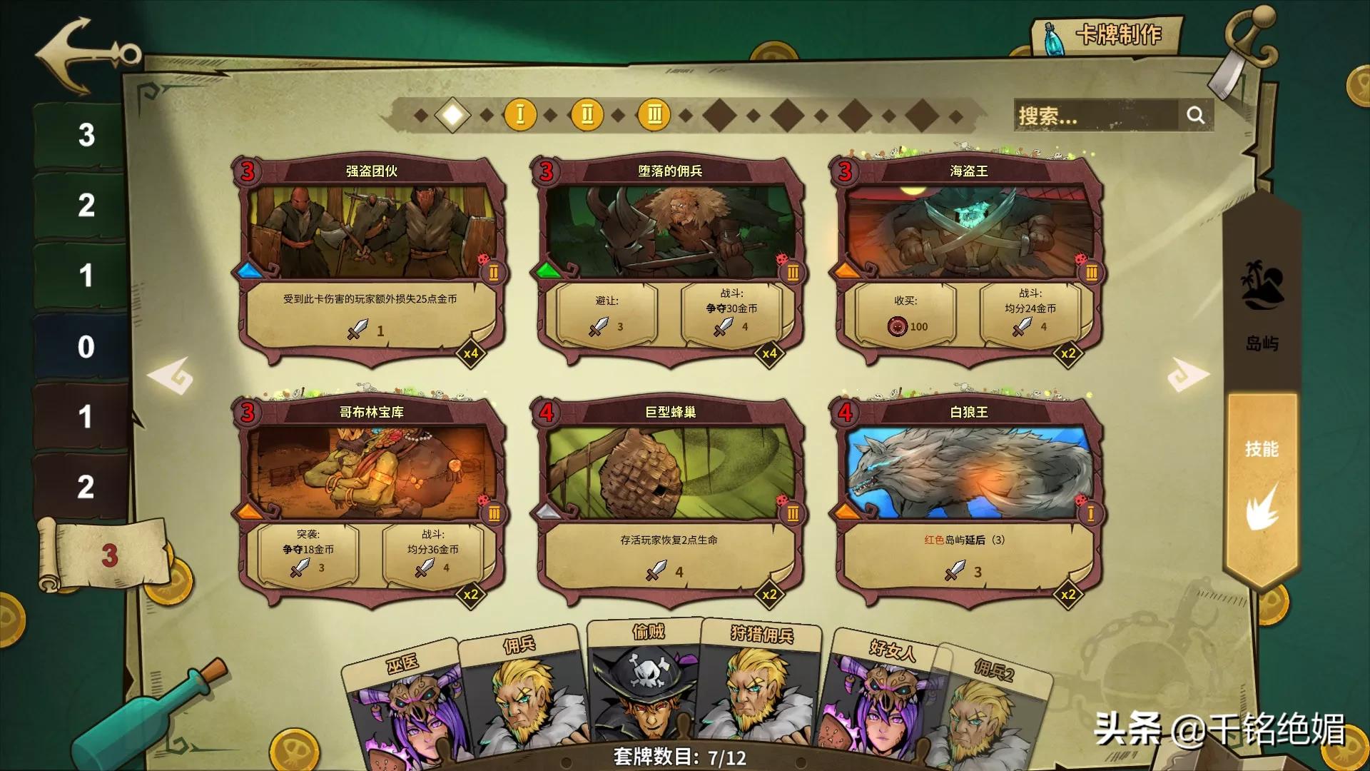 游戏的卡牌很多,分岛屿卡和技能卡,玩家可以根据选择人物的不同自由搭配,来为自己获得更大的效益,而且卡牌可以通过升级和游戏币购买的酒桶获得,完全不需要你花钱购买,在steam上,这个游戏有两个版本,正式版(不免费)和试玩版,你可以去玩试玩版,除了有一些小限制之外,对你正常游玩游戏没有太大影响。