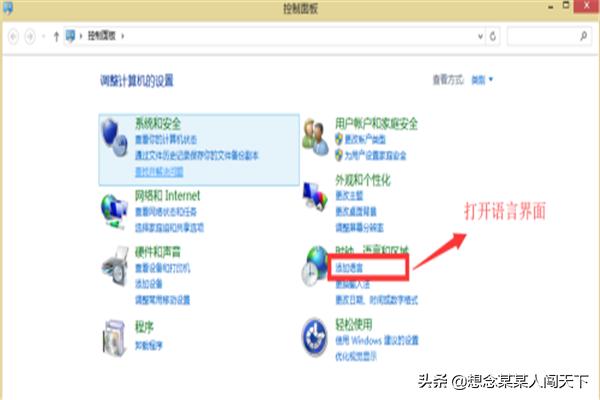 2.第二步:找到语言菜单。打开控制面板后,可以直接点击“时钟、语言和区域”下的“添加语言”,;也可以在控制面板的搜索框中输入“语言”,回车,快速搜索到语言菜单。
