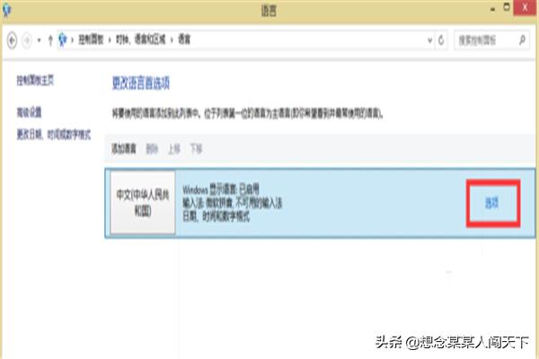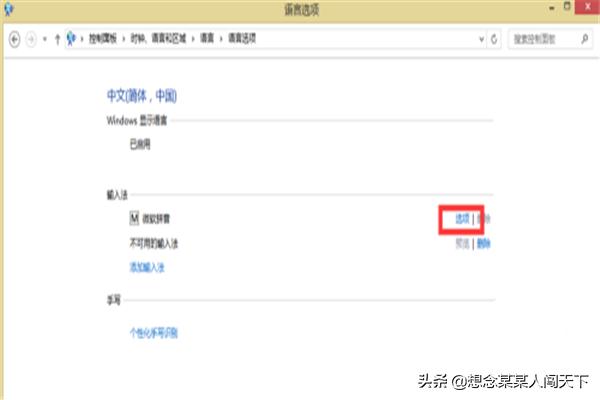 3.第三步:在语言菜单中,找到中文输入法,点击后面的“选项”按钮。