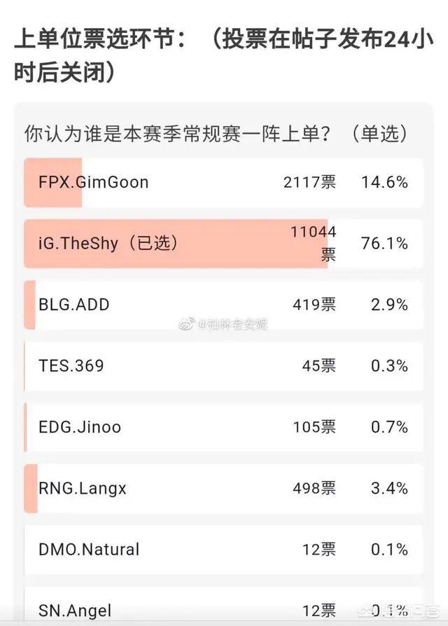 最近网友们在微博上发起投票,选出夏季赛最强上单,这个榜单还是很有争议的,因为榜中有很多选手都是LPL出色的上单,这个投票应该会出现分歧,但没想到差距这么大,theshy一个人占据了76%的票码,与第二相差四倍!!