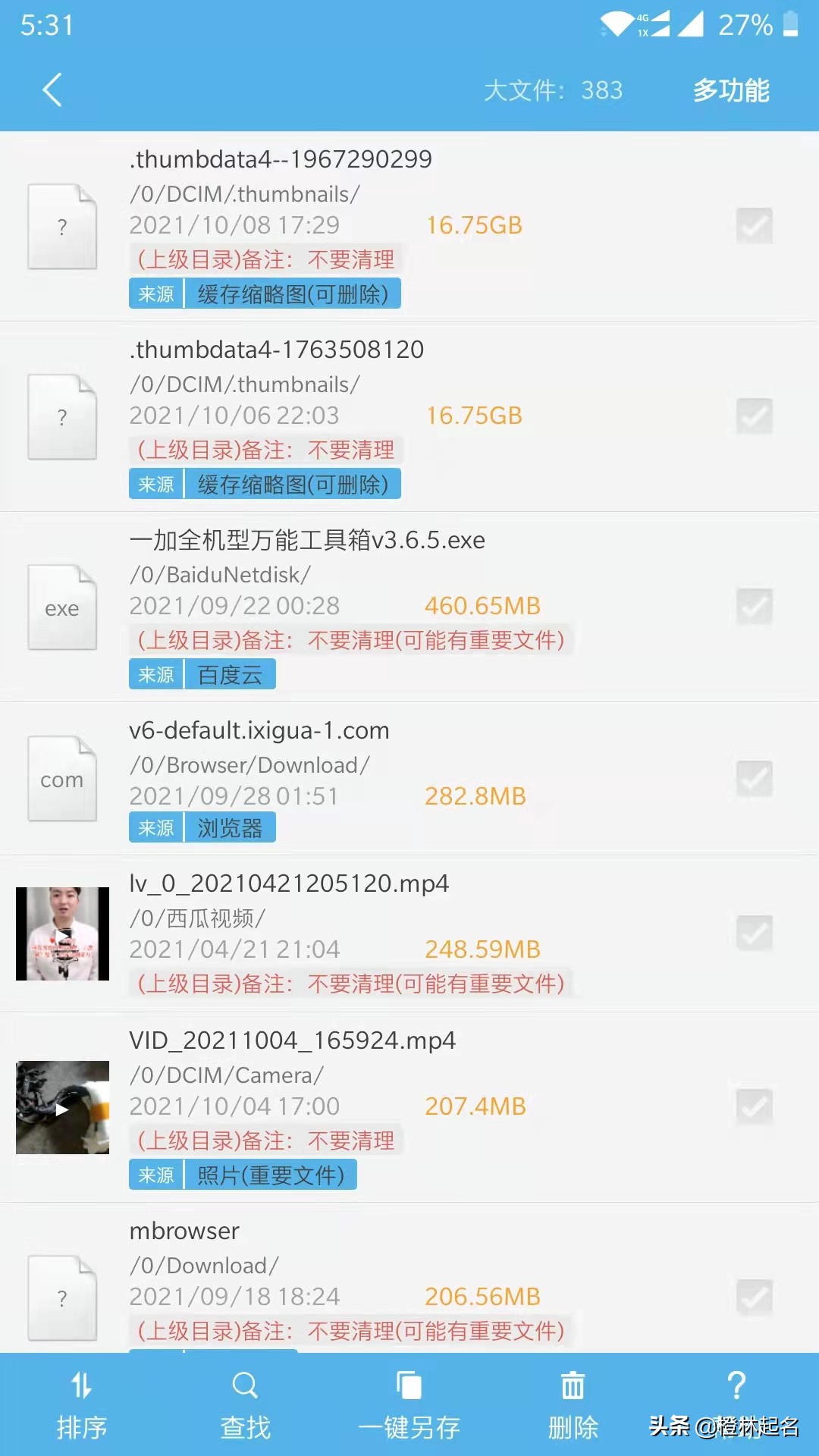 手机管家清理不掉的垃圾,你下第三方的软件也是清理不掉的,还有就是安卓手机的垃圾,有些东西是隐藏起来的,你根本找不到,像一些安装包,压缩包或者是一些卸载残留,一大堆,我之前看过的,如果你不注意的话根本找不到,特别是老年人,不太会玩手机的,所以现在买手机,特别是安卓手机你就买大内存的,省事省心。