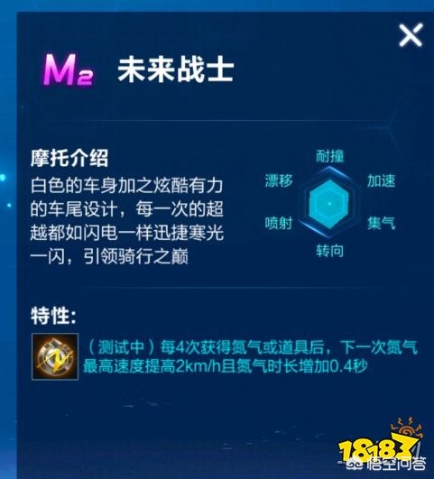 未来战士:使用氮气或道具时,30%概率7秒内每秒获得2%集气且小喷动力提升14%