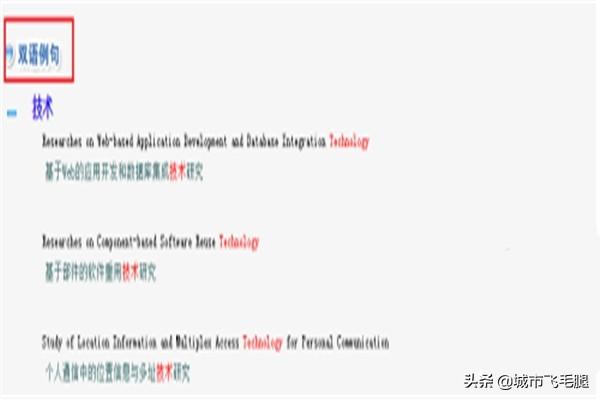 4、举个例子,比如搜索“technology”,通过右侧的“显示更多译词”,可以看到全部的解释,下面还有双语例句,有助于理解,并且还可以查到例句的来源。