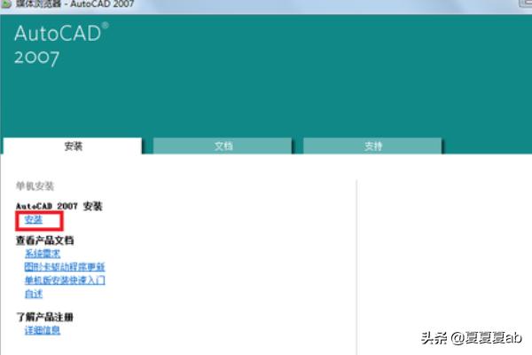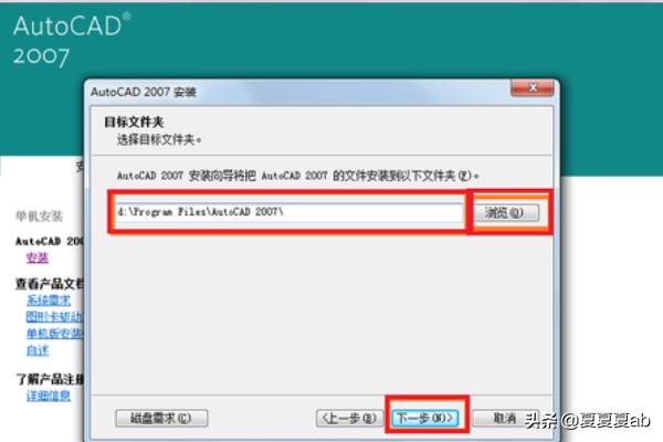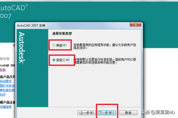 2、点AutoCAD 2007 安装下面的安装,在弹出的小对话框点确定,点下一步。