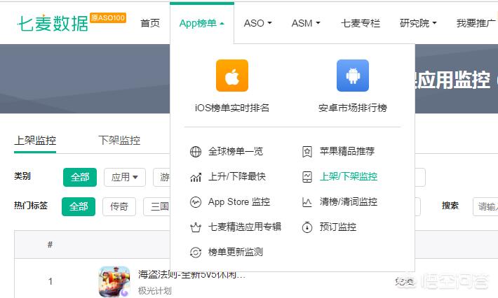 做ASO监控的网站应该都可以监控,比如七麦数据,蝉大师,德普,ASO114等等,这边就推荐一个我比较经常用的七麦数据吧,原名ASO100,一个比较老牌的ASO网站了,做这行的应该都懂。