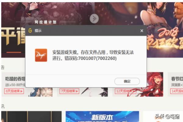 1当我们用wegame下载dnf结束的时候,会自动进行安装,而安装的过程中可能会出现这样一个问题。
